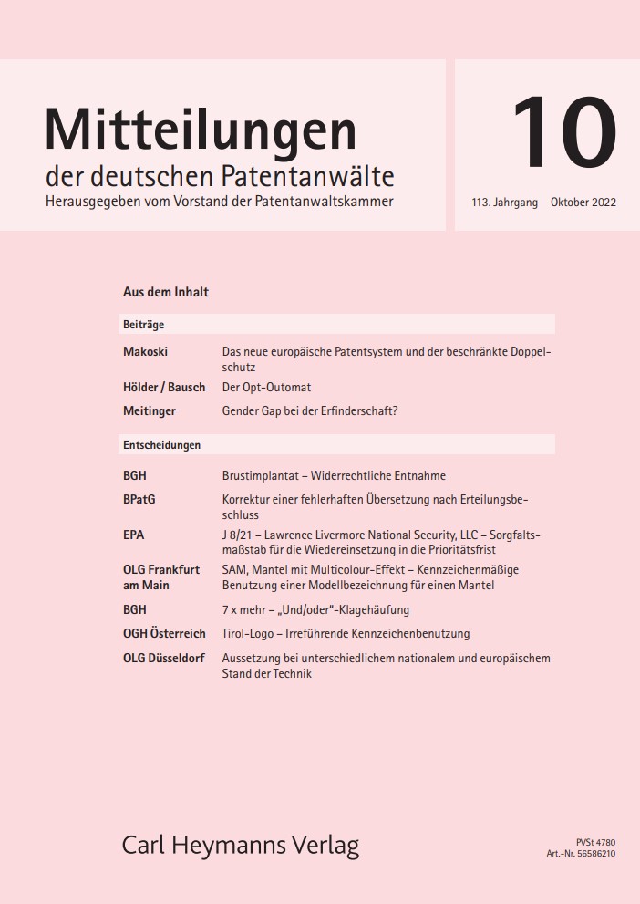 Dr. Meitinger untersucht in der Oktober-Ausgabe des Jahres 2022, ob es in der Erfinderschaft einen Gender Gap, also eine deutliche Unterrepräsentierung von Frauen, gibt.