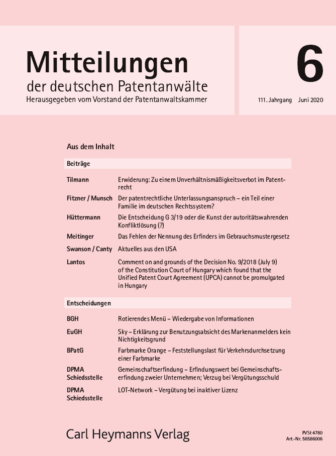 Ein Plädoyer zur Nennung des Erfinders im Gebrauchsmuster in der Juni-Ausgabe des Jahres 2020.