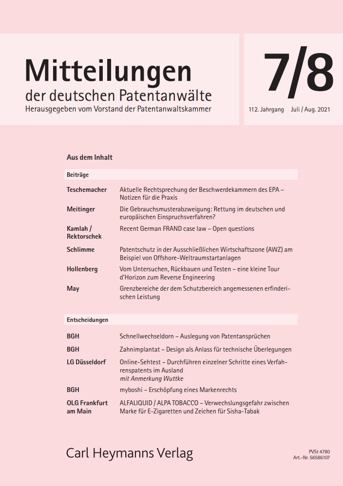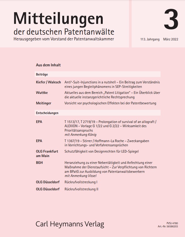 Dr. Meitinger beschreibt in der Juli/August-Ausgabe des Jahres 2021 die Gebrauchsmusterabzweigung im deutschen und europäischen Einspruchsverfahren.