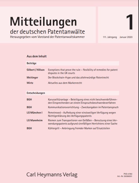 In der Januar-Ausgabe des Jahres 2020 skizziert Dr. Meitinger das Konfliktpotential des Patentrechts mit der Blockchain-Technologie.